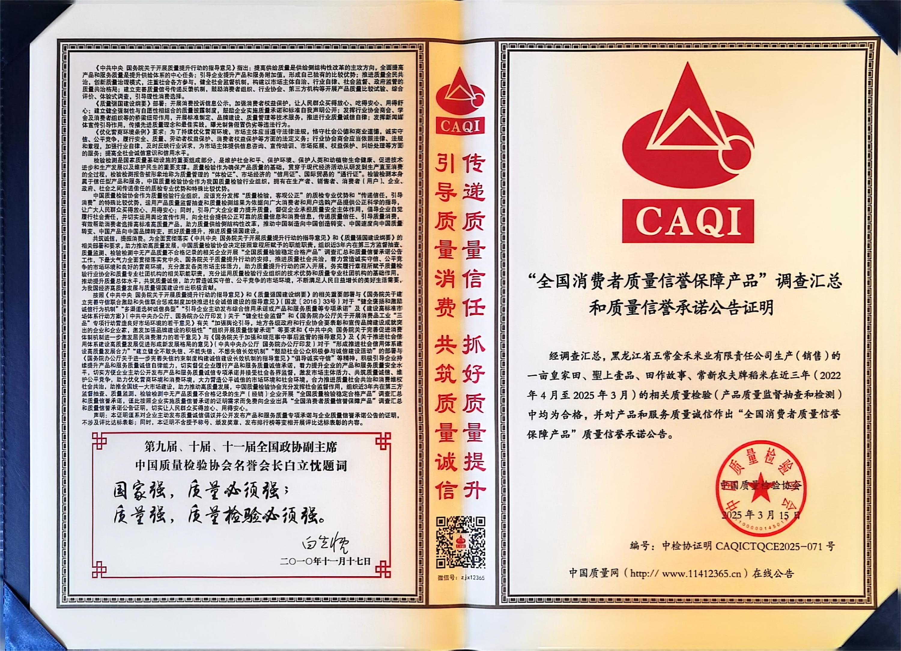 “全國消費者質(zhì)量信譽保障產(chǎn)品”